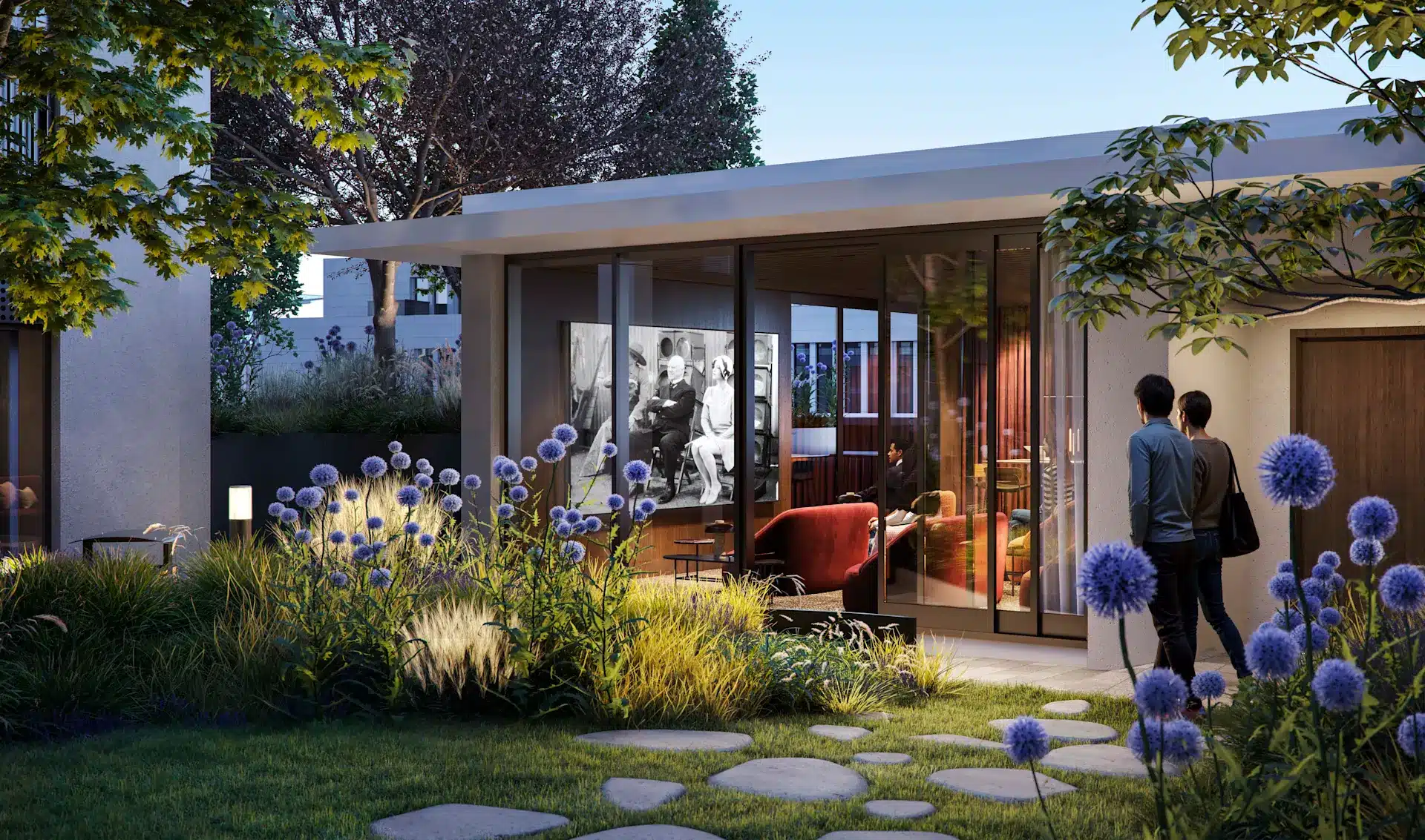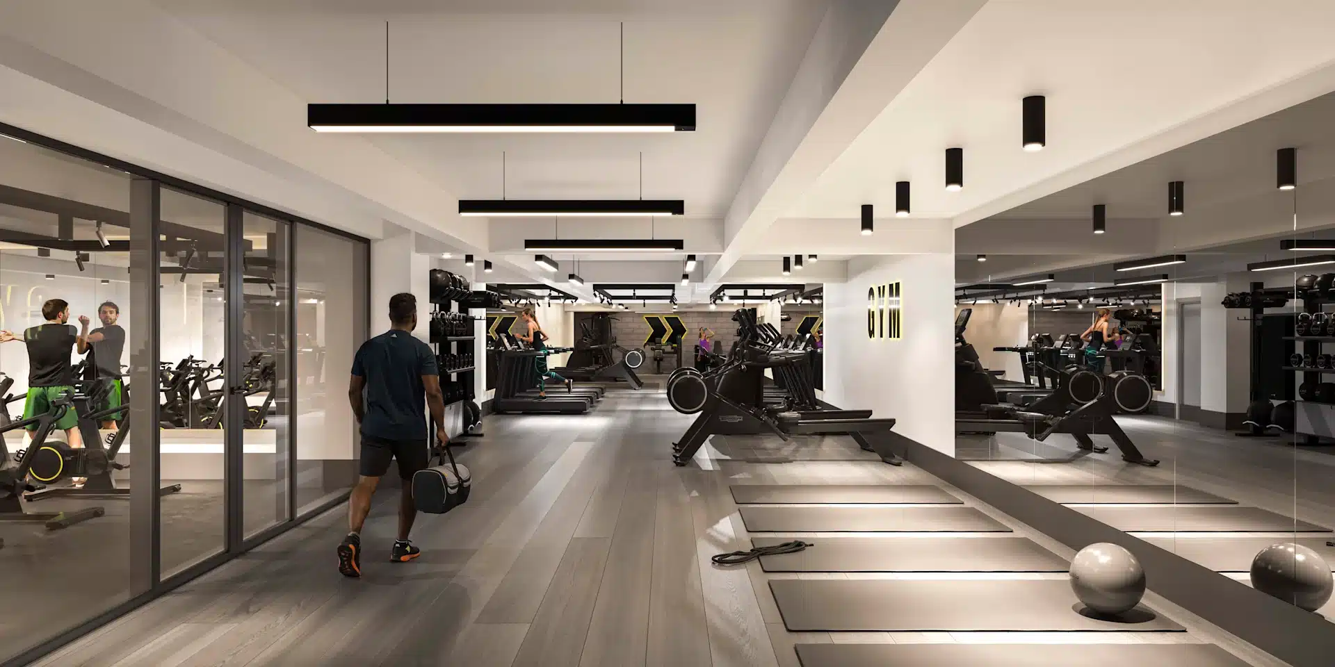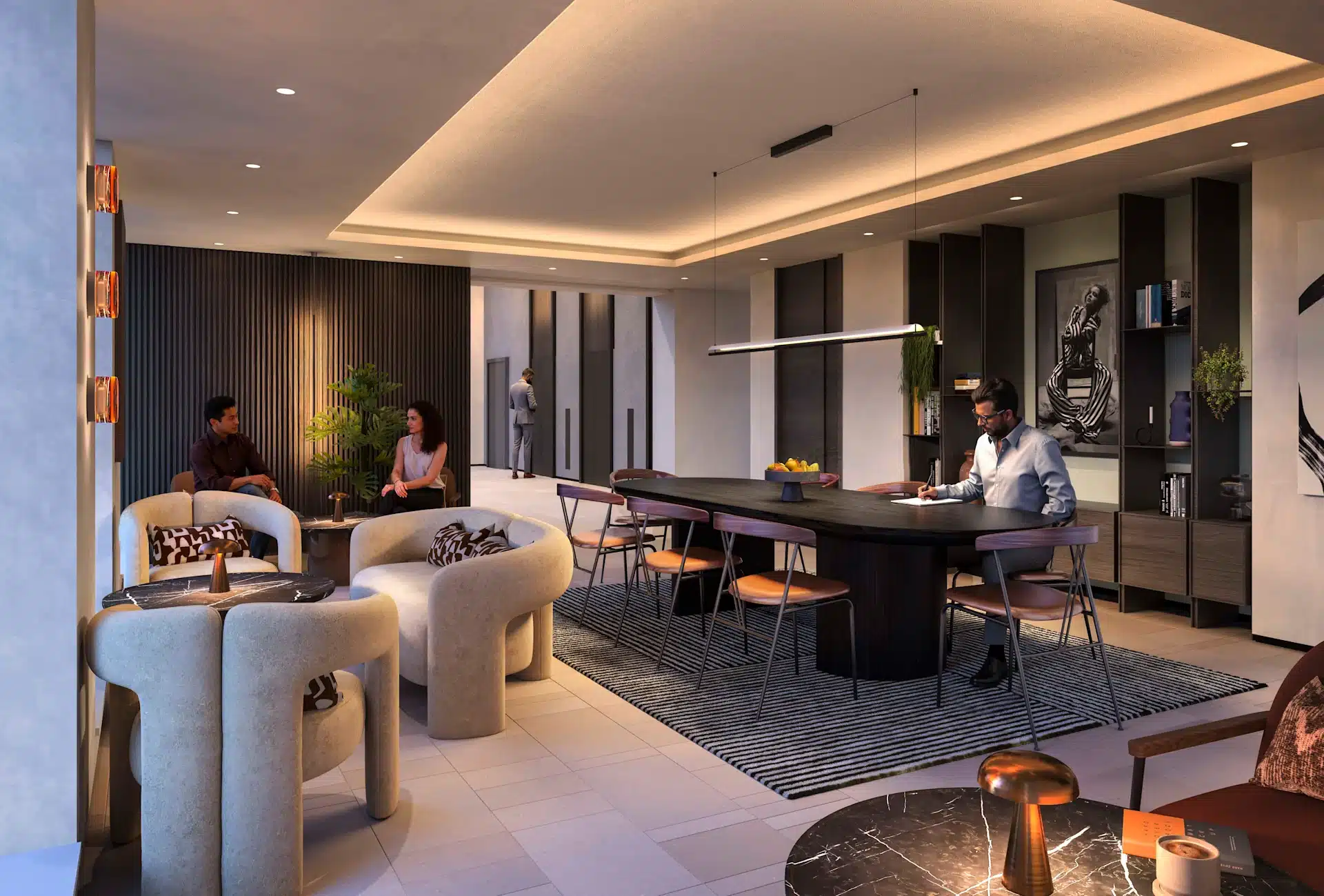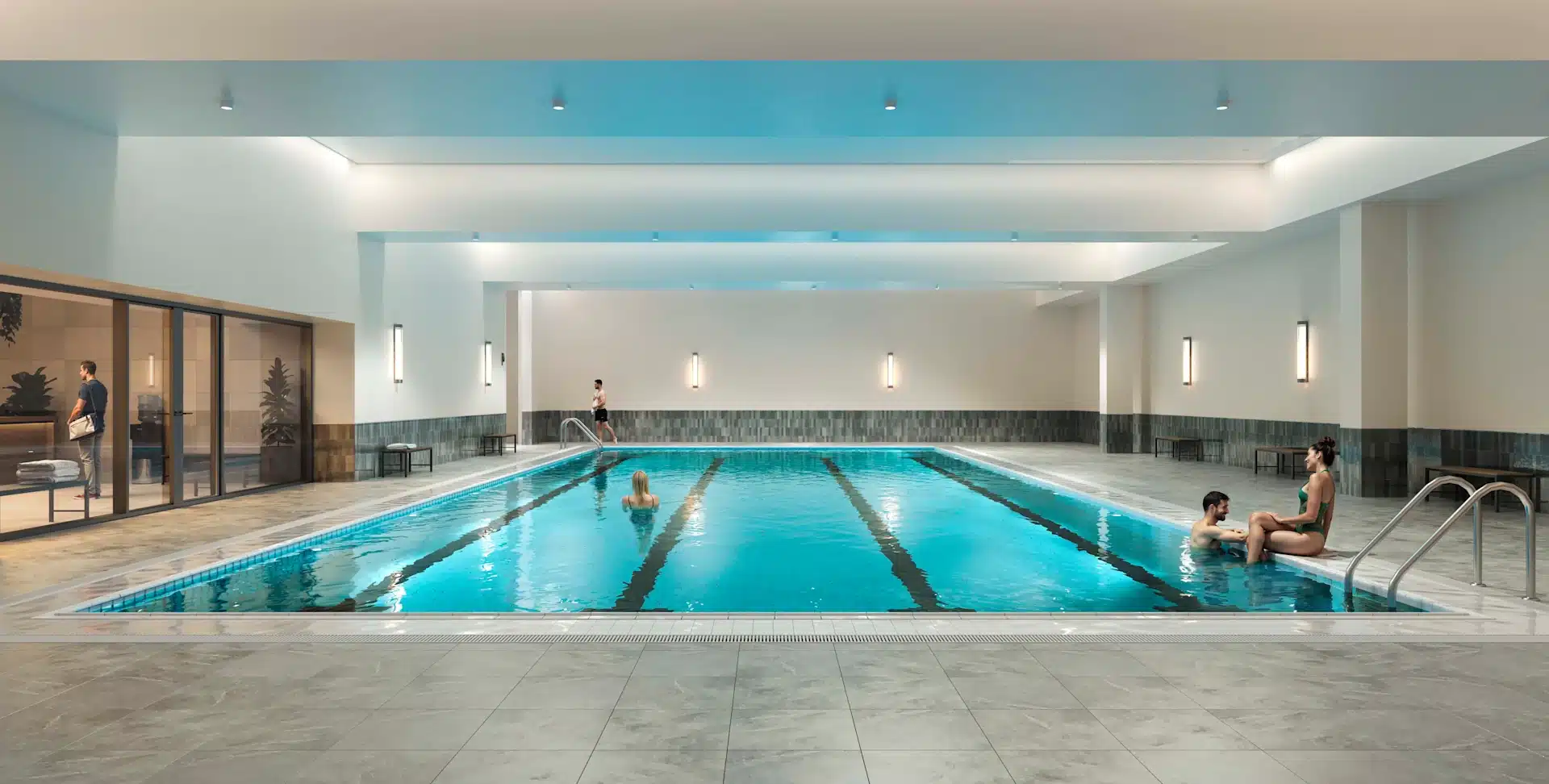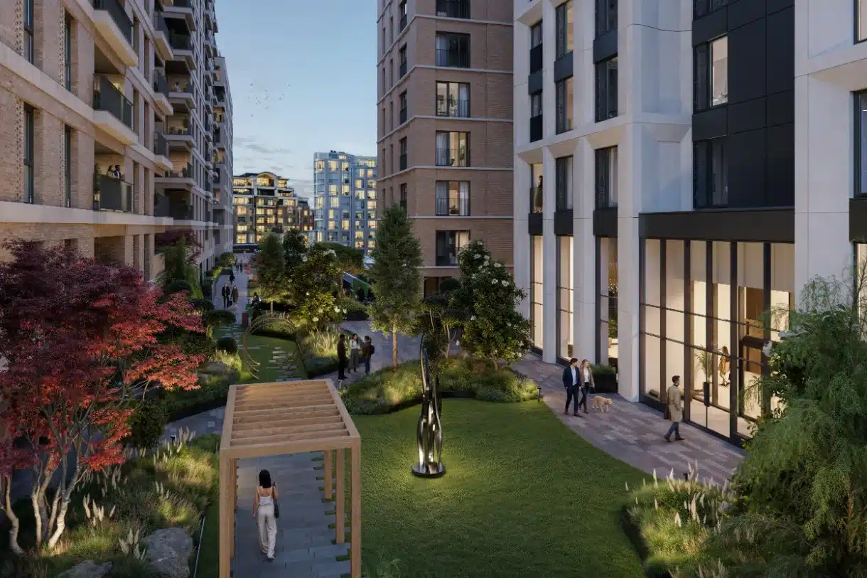 Residents have access to a 20-metre indoor pool, a fully equipped gym and studio, a private lounge, and a cinema and events room. The podium gardens — complete with a sculpture by artist David Harber — are four storeys above street level and offer a rare sense of calm for central London. A concierge is on site seven days a week.