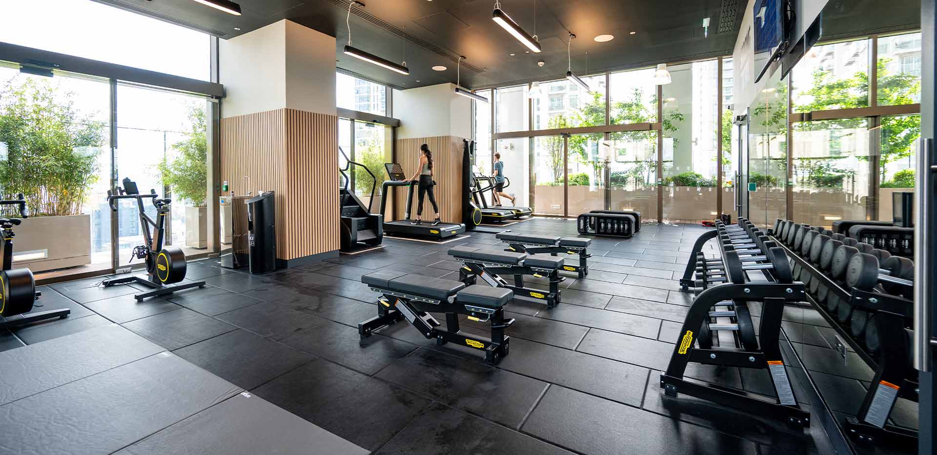 Жителям открыт доступ к приватному клубу The Quay Club с удобствами в Harcourt Gardens и Hampton Tower. Здесь есть спа, тренажёрный зал, открытые горячие ванны, рабочие зоны, комнаты для караоке и игр, сад на крыше и бар на 56-м этаже. Всё для того, чтобы можно было переключаться между работой и отдыхом, не выходя из дома.